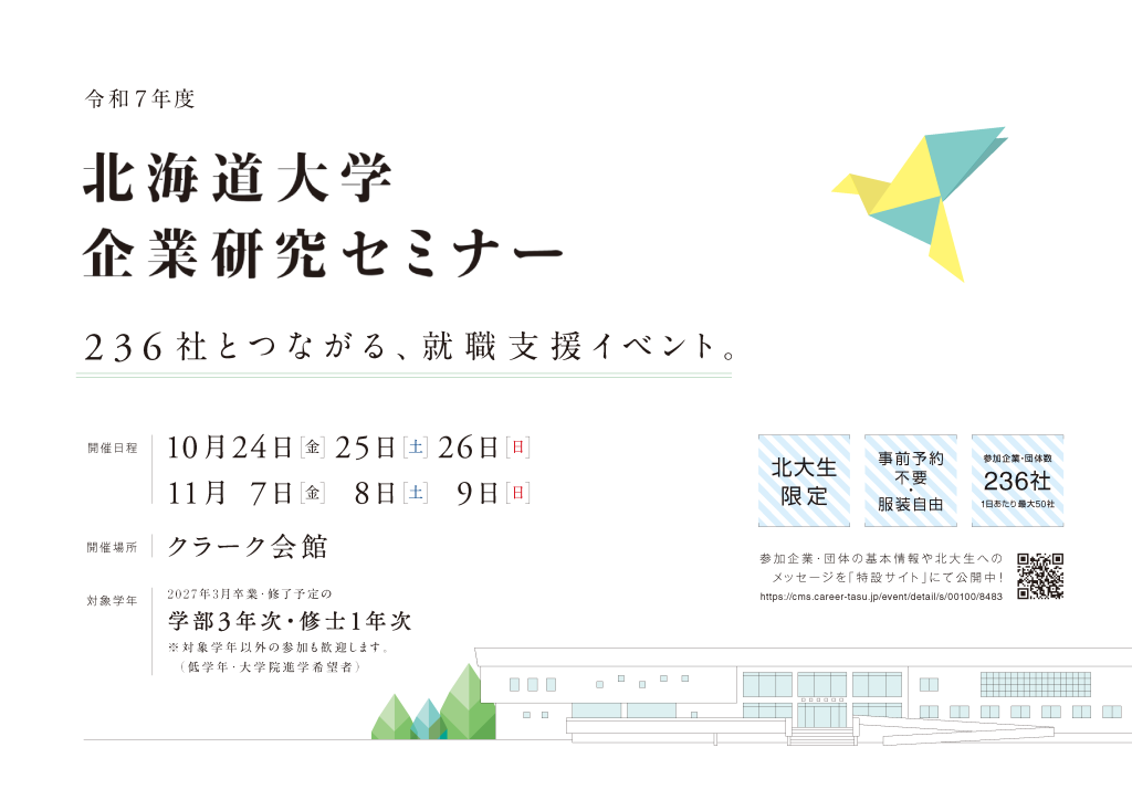 北海道大学企業研究セミナーのお知らせ(10/24-26・11/7-9開催)