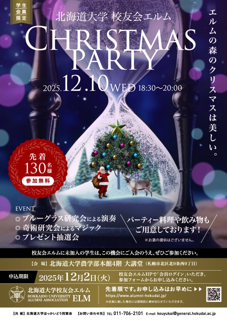 (定員に到達しました) 【12/10(水)開催・学生会員限定】校友会エルム クリスマスパーティーについて