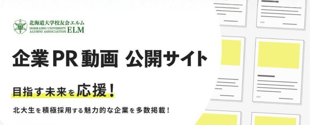 校友会エルムでは昨年に引き続き、企業PR動画サイトを公開いたしました。