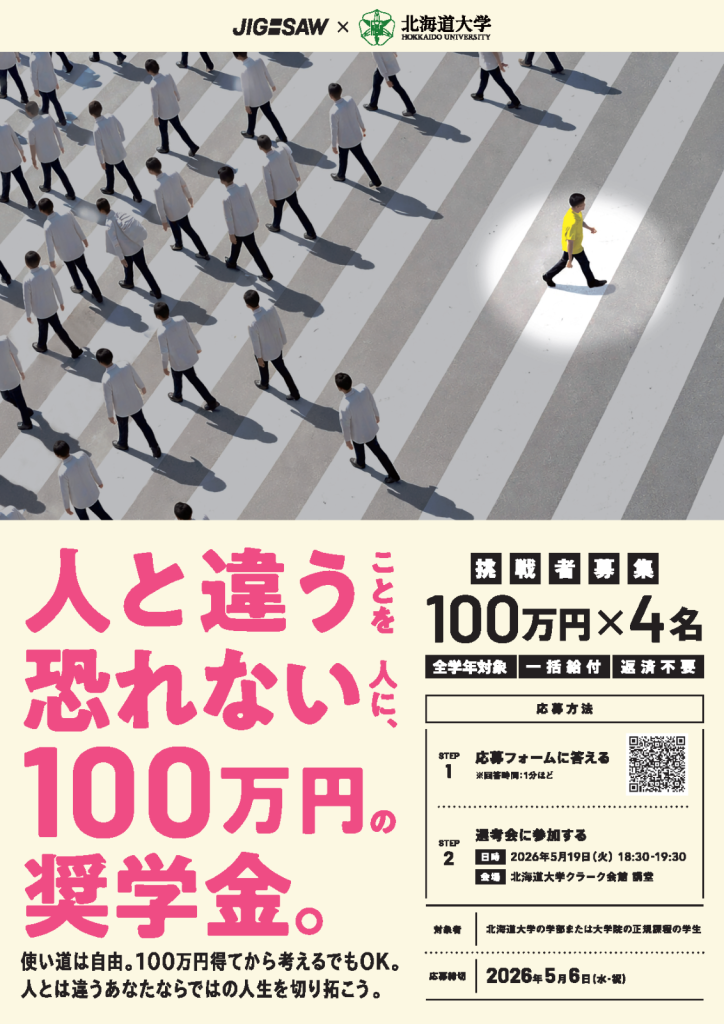 令和8年度「JIG-SAW×北海道大学 奨学金」募集開始のお知らせ