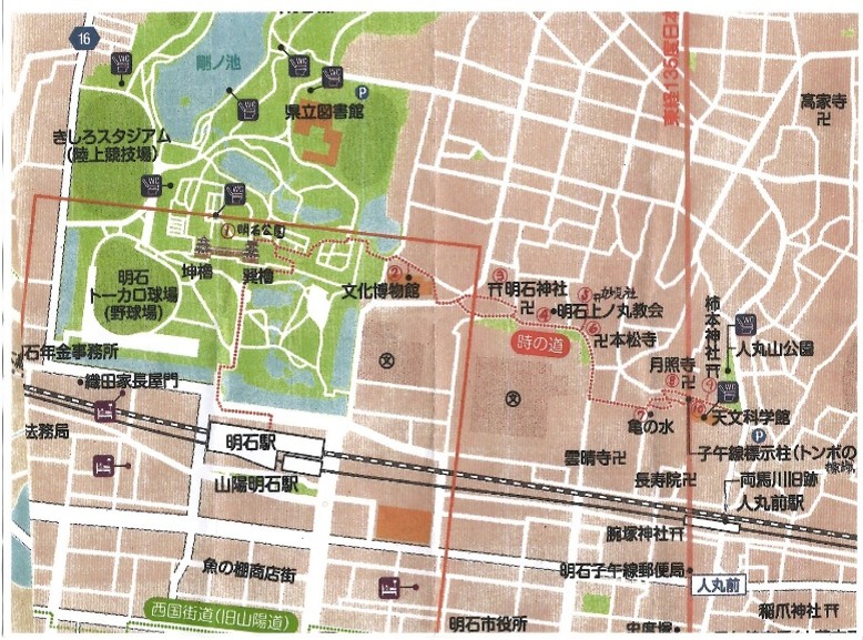 北大関西同窓会では毎年2回(春と秋)に歴史ウォークというイベントを開催していまして、今回で31回目になりました。今回はJR明石駅に集まり、「明石城」、「子午線の街」、「魚棚商店街」を巡りました。