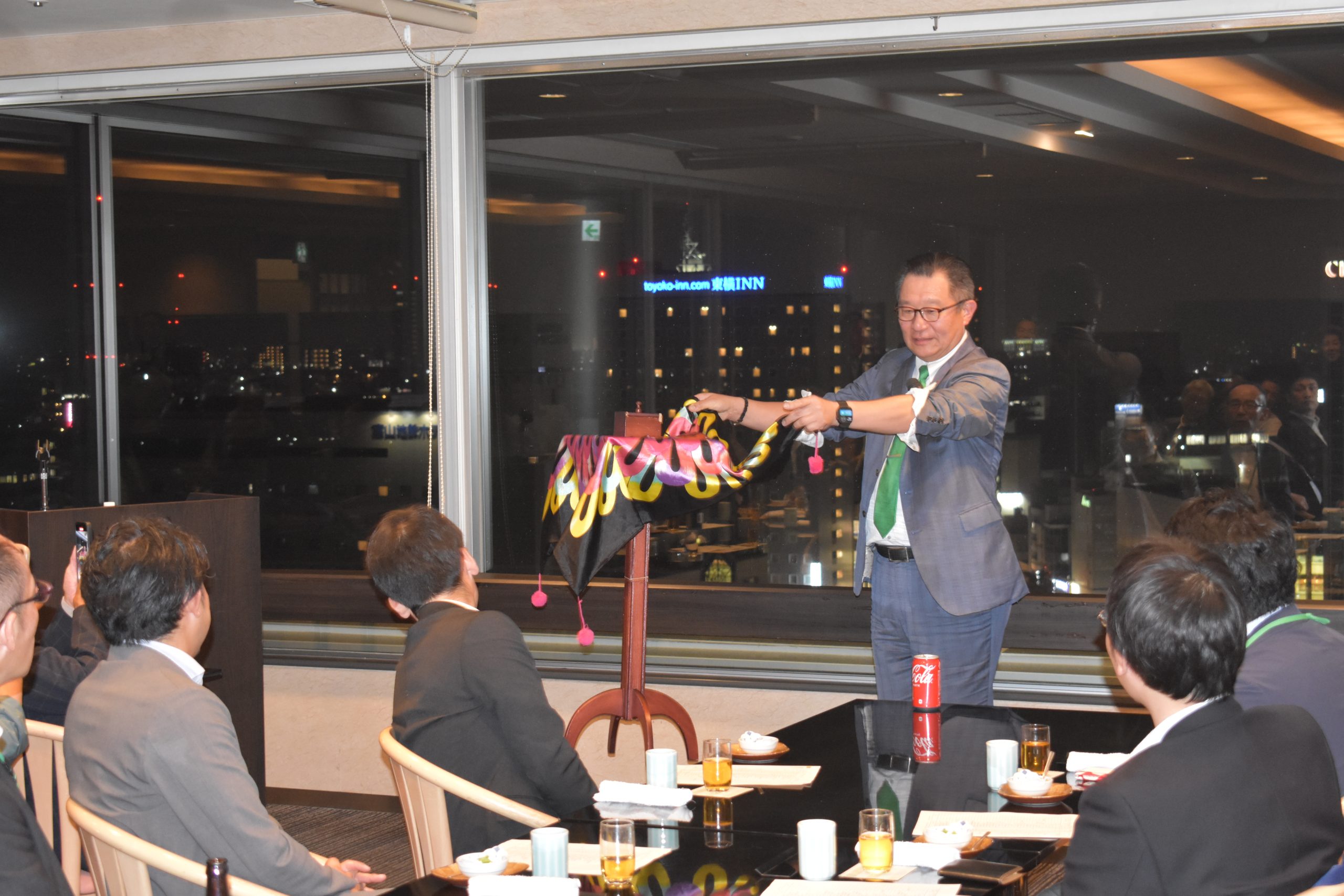会社 富山支社長 松平 好治 氏によるマジックショーが行われ、母校の最新情報や手品の妙技に