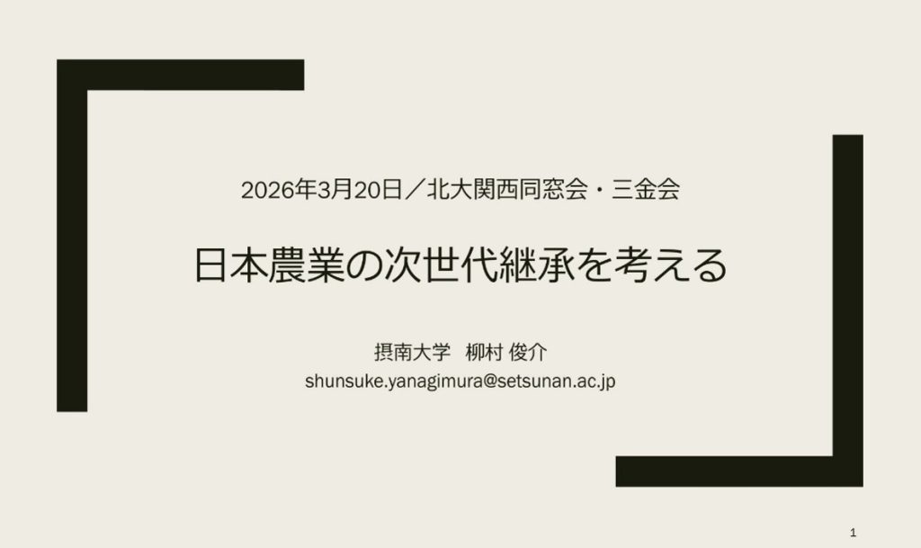 2026年3月の三金会は、昭和53年農学部ご卒業で、北海道大学名誉教授の柳村俊介先生から、「日本